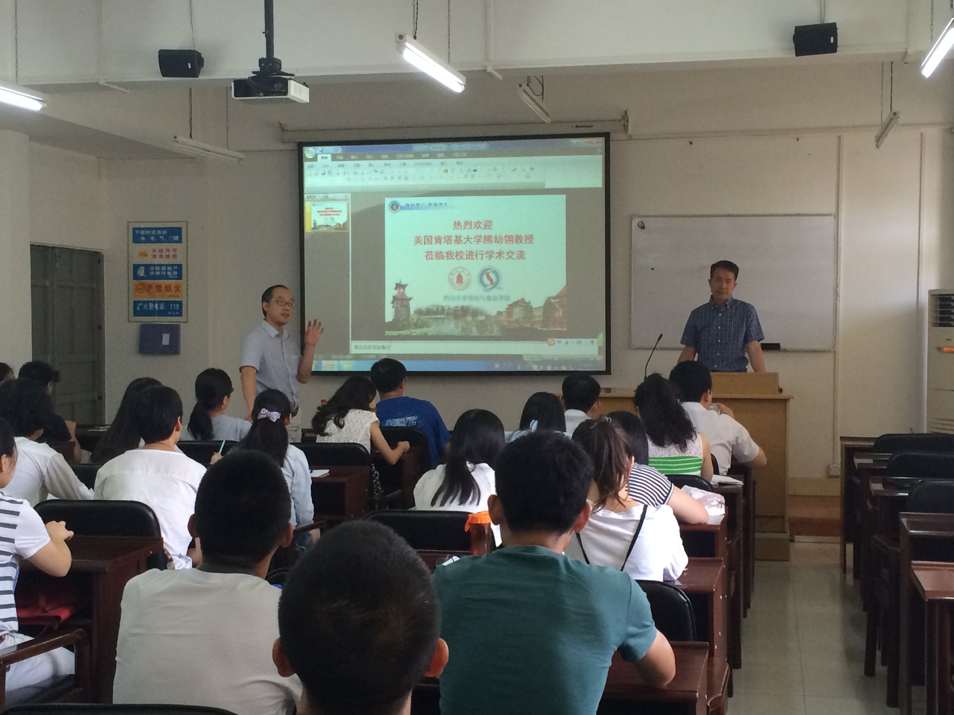 6月17日上午10点30分,国际知名蛋白质化学专家熊幼翎教授在四川大学纺工楼应邀发表题为“提高食品蛋白质功能的新技术”的学术报告,广大师生慕名而来,报告现场座无虚席,报告由食品工程系系主任何强教授主持。报告前期,熊教授简要地介绍了美国肯塔基州的文化、大学以及他的科研团队,他诙谐幽默的语言迅速使会场气氛轻松愉悦。随后,熊教授以独特的科学视角从蛋白质加工特性的角度出发,结合基础理论及最新的研究成果,从物理、化学、酶等几方面生动地讲述了几种提高食品蛋白质功能的新技术。其中,熊教授讲到他因在国际会议中受到启发,率先采用谷氨酰胺转胺酶(TGase)应用于肉制品加工中,利用TGase可催化体外多数蛋白质发生分子间或分子内交联反应的特性,提高产品的弹性及持水能力。他鼓励大家要保持同学、朋友和同事间的学术交流和互动,及时关注最新的学术动态,培养自身敏锐的学术嗅觉,大胆尝试,勇于动手。在最后的提问环节中,同学们踊跃提问,如:目前国际上对肉制品安全检测的新技术,多酚类物质在肉制品加工中的应用现状,如何提高撰写SCI文章的能力及录用率等问题,熊教授均耐心细致地为同学们一一解答。报告中,熊教授流利的口语、富有磁性的声音、挺拔儒雅的气质、深入浅出的讲述让大家如沐春风、受益匪浅,收获知识与开阔视野的同时更被熊老师深厚的学术积淀与个人魅力深深折服,此次报告在师生们热烈的掌声中结束。 资料链接: 熊幼翎博士现为美国肯塔基大学终身教授、江南大学特聘教授、美国食品科学家联合会(Institute of Food Technologists)会刊《Journal of Food Science》副主编,先后获得美国肯塔基大学杰出研究科学家奖、美国肉品科学协会杰出研究奖、杰出成就奖、美国化学会青年科学家奖、瑞典皇家农林科学院Bertebos奖等多项学术奖励,是国际知名的食品蛋白质化学及应用领域的权威专家。