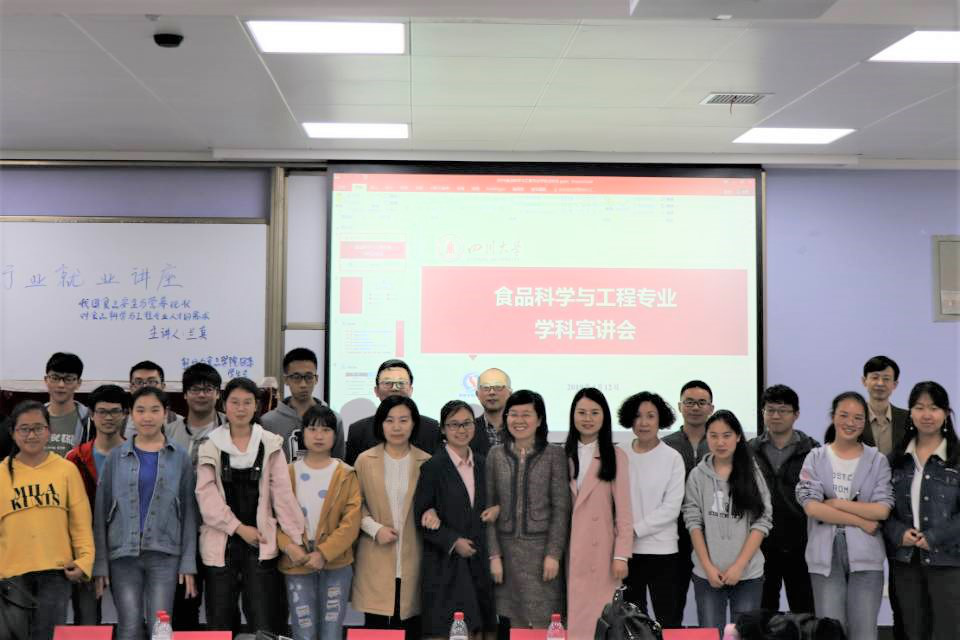 2019年4月12日下午15:00,由四川大学轻纺与食品学院食品工程系主办的食品行业就业讲座及学科宣讲会在江安校区第一教学楼B座204教室圆满举行。四川省疾病预防控制中心营养与食品卫生安全所兰真所长担任讲座主讲嘉宾,何强教授等多位食品工程系教师出席参加。