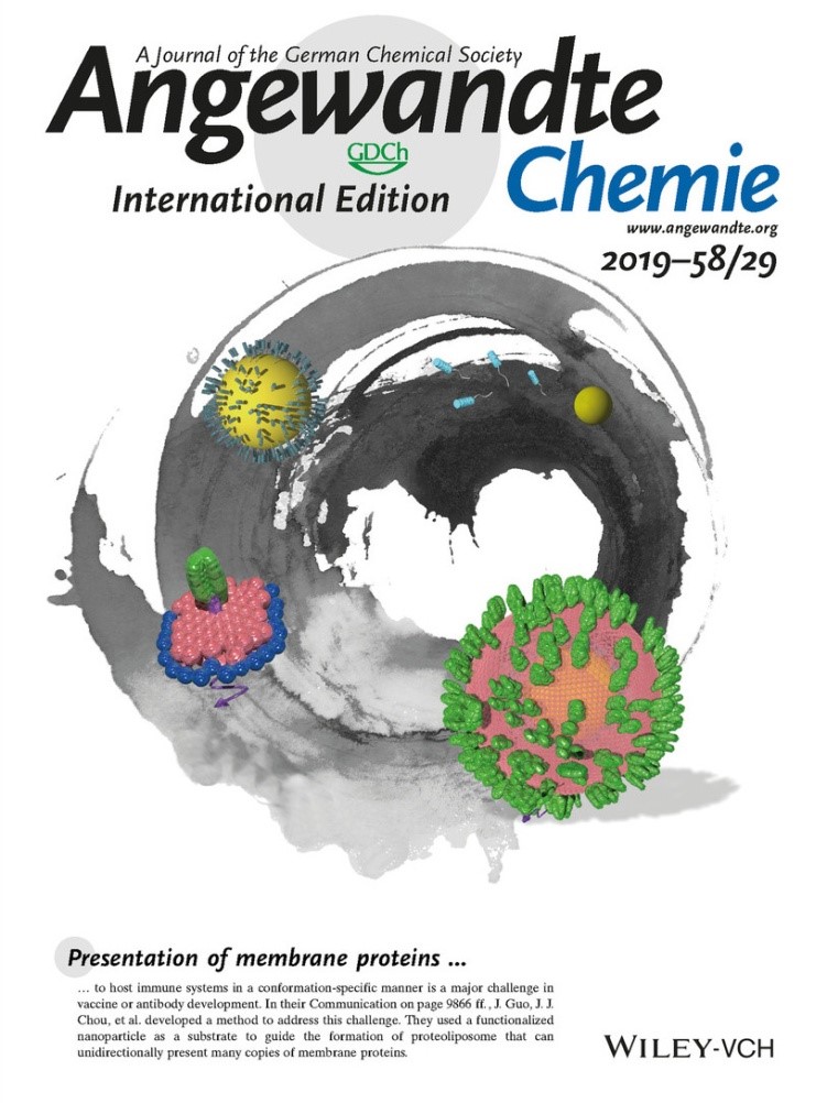 在这次疫情防控和科研攻关当中,高等学校及其附属医院是一支非常重要的力量。近期,bw必威西汉姆联官网郭俊凌教授课题组与哈佛医学院研究团队在国际顶级期刊《Angewandte Chemie International Edition》(德国应用化学)以外封面形式在线发表题为“Unidirectional Presentation of Membrane Proteins in Nanoparticle-Supported Liposomes”研究论文(2019年6月25日正式发表)。该研究开发一种病毒膜蛋白新型组装技术以及一种人工病毒合成的新平台方法,同时该技术也可以用来研发各种受体蛋白、离子通道以及转运蛋白的高效抗体。在该研究中,研究人员成功地合成了艾滋病HIV类病毒,并且检验了其在动物模型中有效抗体的产生,这个研究极大地鼓舞了该研究团队尝试利用这项新技术合成新型冠状病毒SARS-CoV-2疫苗。