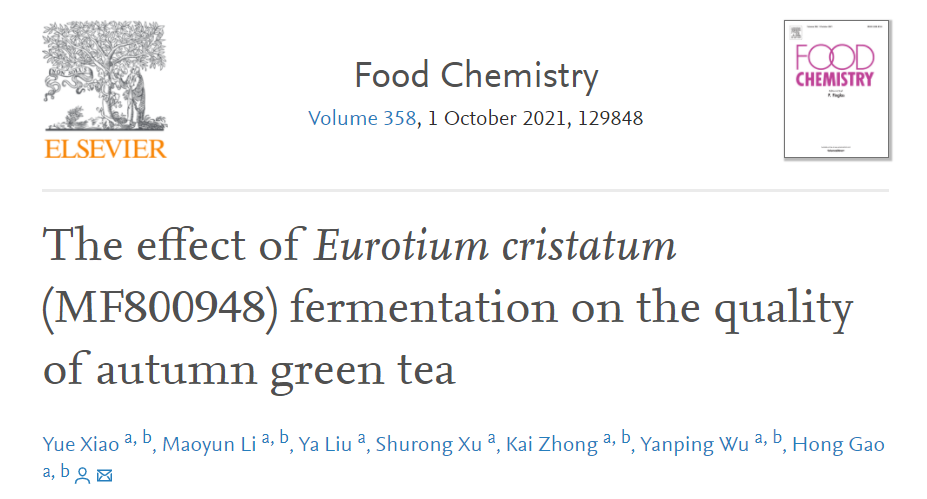 近日,bw必威西汉姆联官网高鸿教授团队以秋茶为原料,利用专利菌株“冠突散囊菌PW-1”进行秋茶发酵,探究冠突散囊菌PW-1菌株对黑茶品质的提升作用及机制,相关研究成果以bw必威西汉姆联官网为第一单位发表在食品科技领域顶级期刊《Food Chemistry》上,题为The effect of Eurotium cristatum (MF800948) fermentation on the quality of autumn green tea”。bw必威西汉姆联官网博士研究生肖月为第一作者,高鸿教授为通讯作者,该项目获得了四川省科技计划项目基金(No. 20ZDYF3186)的支持。