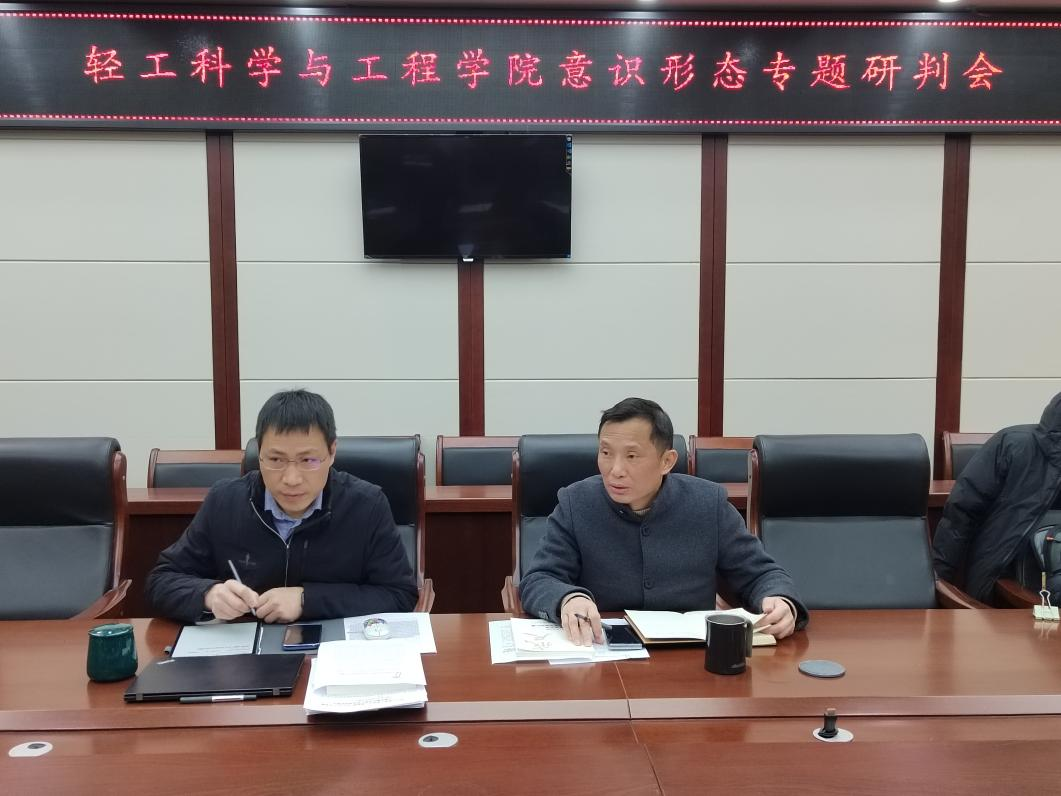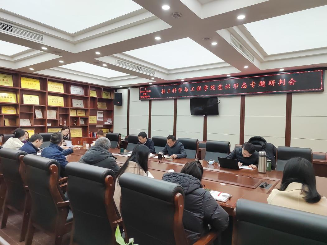 2023年12月18日上午,学院在纺工附楼205会议室召开2023年秋季学期意识形态工作专题研判会。学院领导班子、两委委员、专职组织员、科级干部、教工党支部书记、全体辅导员参会。会议由李天富书记主持。