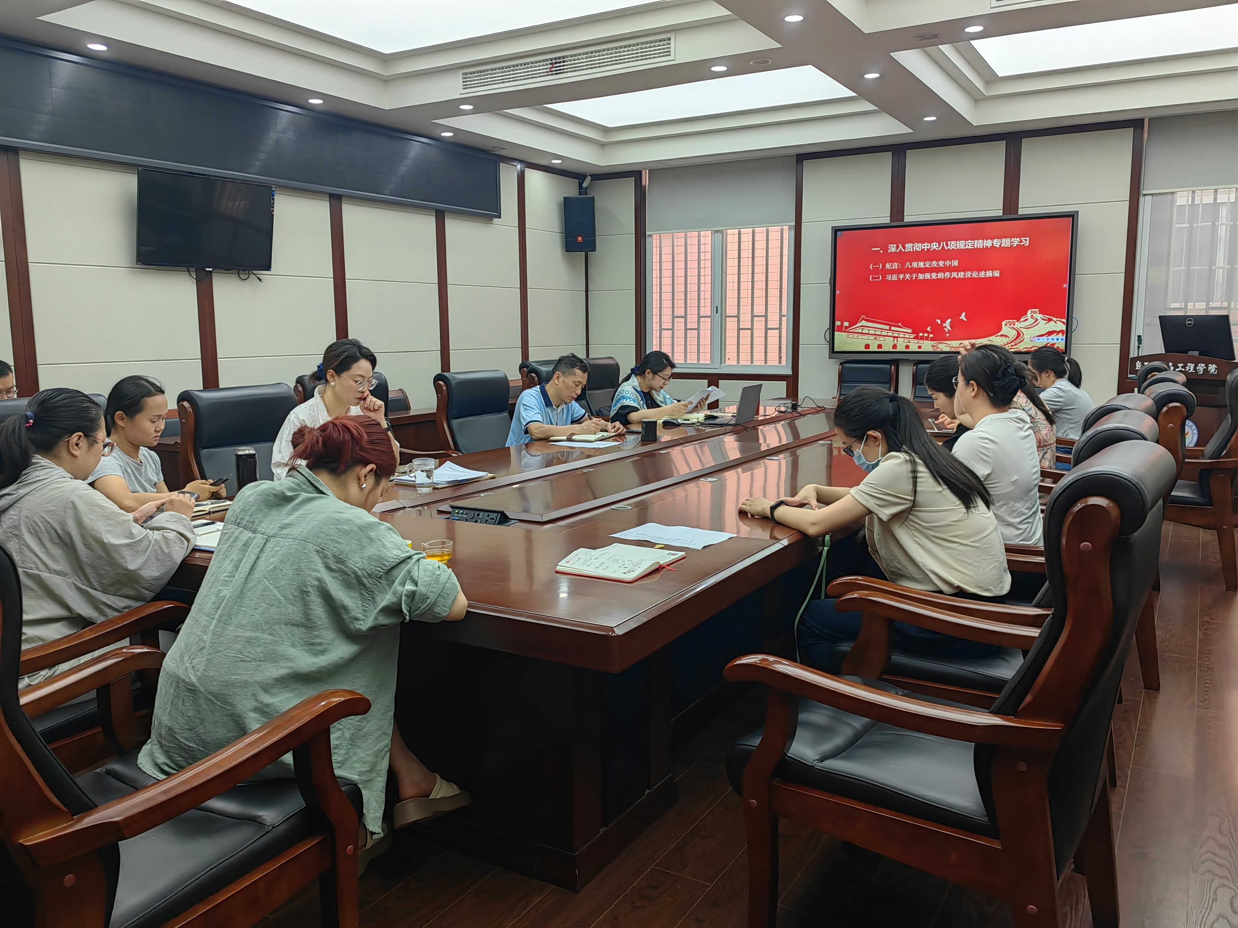 2025年5月29日上午10点,公共服务教工党支部在纺工附楼205会议室开展深入贯彻中央八项规定精神学习,支部全体党员参加了此次会议。