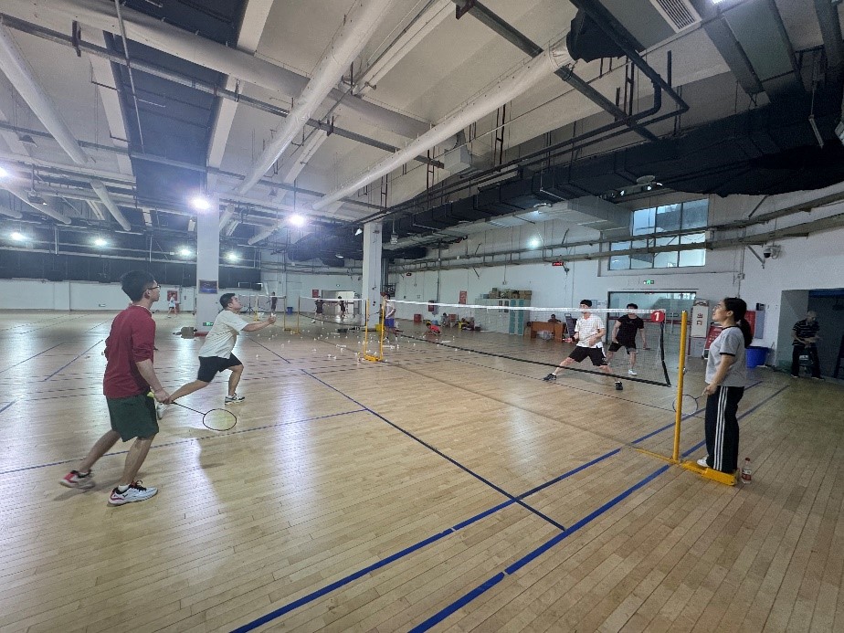 现场气氛热烈,同学们纷纷摩拳擦掌,跃跃欲试。在自由热身环节,大家手持球拍,尽情挥洒汗水,灵活的步伐、有力的挥拍,迅速点燃了现场的运动氛围,为后续的比赛做好充分准备。一个小时的热身结束后,随即进入紧张刺激的双打比赛环节。现场采用自由和随机分配队员的方式,两两组合形成参赛队伍,各队伍秉持着“友谊第一,比赛第二”的原则,迅速投入到激烈的角逐中。