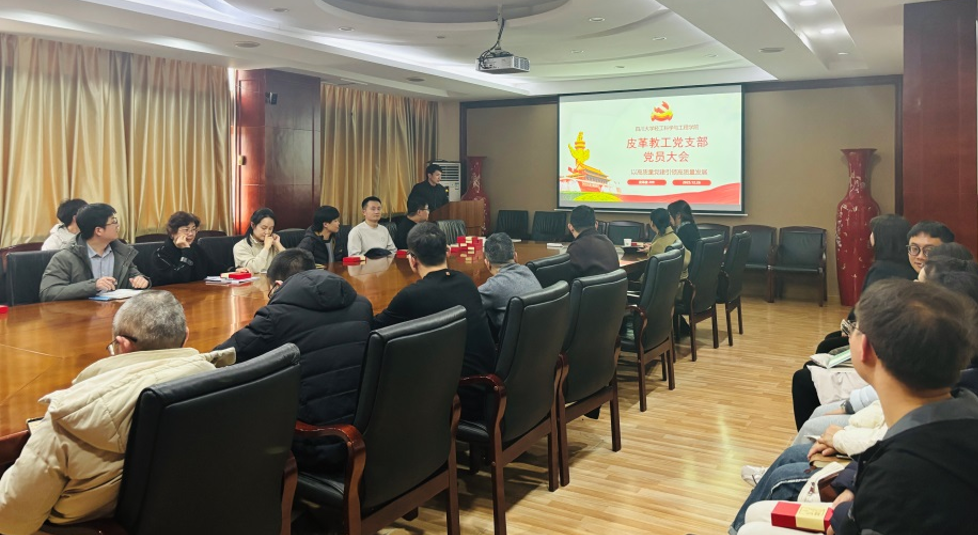 20251226日,bw必威西汉姆联官网皮革教工党支部在皮革楼209会议室开展了“以高质量党建引领高质量发展”主题党日活动。本次活动旨在深入学习贯彻党的二十届四中全会精神,强化基层党组织建设,切实以高质量党建引领事业高质量发展。活动由支部书记周加境主持,学院党委书记李天富、院长彭必雨、党委副书记兼纪委书记姜新到会指导。
