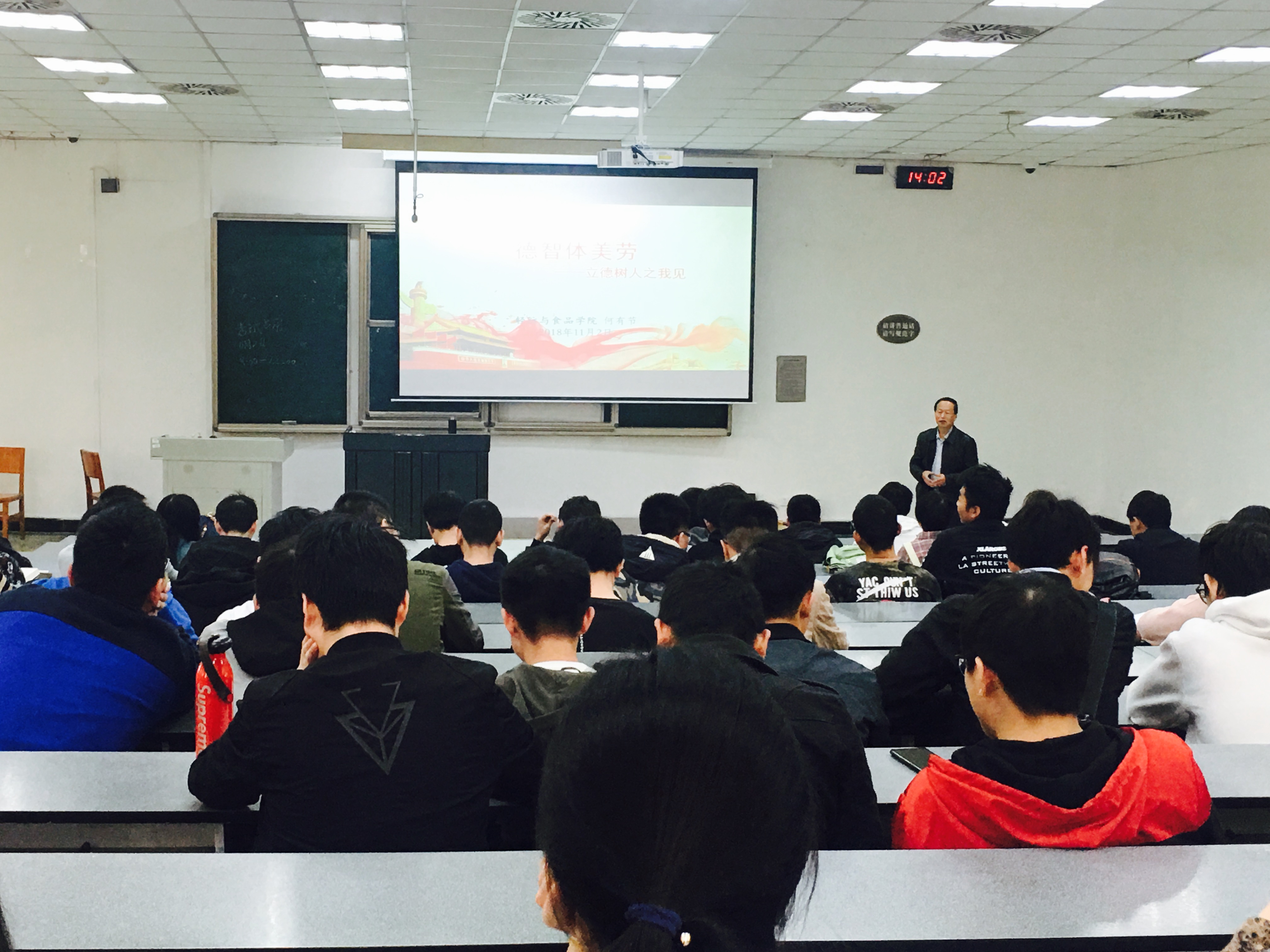 2018年11月2日下午,轻纺与食品学院院长何有节教授以“德智体美劳全面发展—立德树人之我见”为主题为bw必威西汉姆联官网2015级本科生讲授形势与政策课。本次课程由2015级辅导员贺婷老师主持,2015级全体本科生200余人参加了此次课程学习。