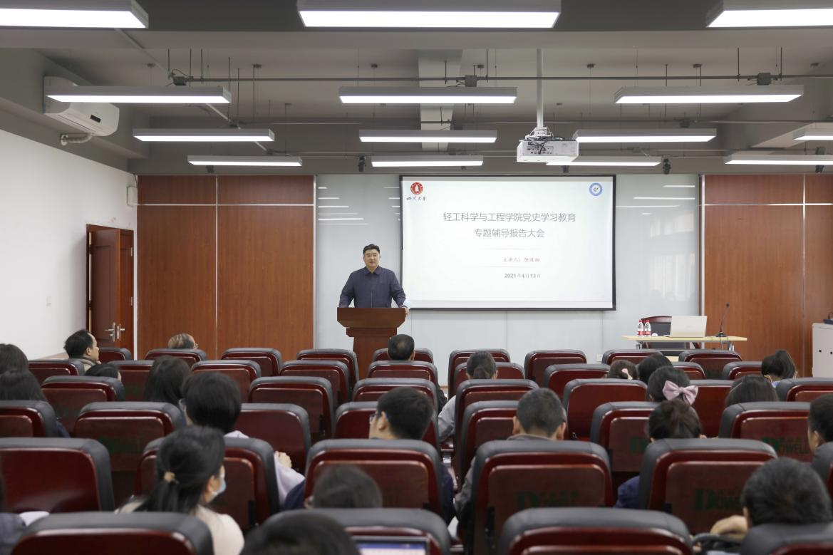 2021年4月13日,学在皮革楼215报告厅组织召开党史学习教育专题辅导报告大会,邀请学校党史学习教育专家宣讲团成员陈廷湘教授作辅导报告。报告会由刘晓虎书记主持。