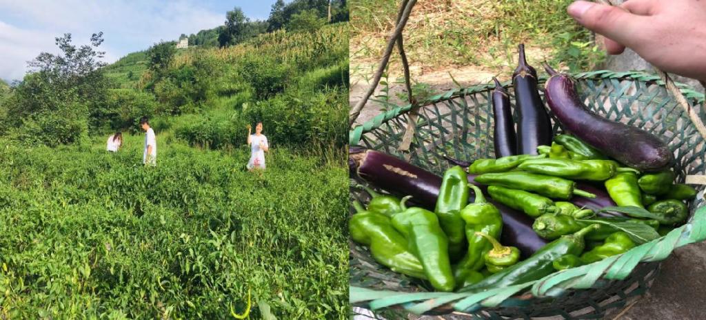 实践团成员在社会实践中边走、边看、边想、边提高。红军行军当年吃什么,这是“95后”实践团成员一直关心和念念不忘的。行程前,实践团成员饶有兴趣查阅了相关历史资料,来自食品专业的两位同学,将专业知识和当地红色文化相结合为实践团制定了红军餐食谱。其中,红苕饭、南瓜汤和秋茄子是红军餐的三大主角。7月25日中午,实践团同学按照既定计划分工合作,有的下地采摘当季新鲜蔬菜,有的生火煮饭,有的切菜洗碗,有的大厨现身,各自专注着手中的活。他们是家里的“95后”,此刻却是红军战士,排除万难生火灶饭,只想用自己的双手亲自做一桌“红军餐”。
