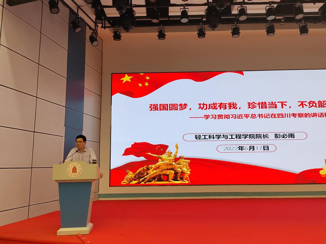 紧接着,彭必雨院长带领同学们一起回顾了党的十九大以来习近平总书记对四川两次考察的主要内容,并以“强起来”为关键词解读了习总书记今年6月的考察重点。彭院长从粮食安全保障措施要强、文化自信文化要强、科技创新科技要强、青年成长要强等四个维度,结合四川大学学科发展方向、育人理念以及学院专业特色等方面,鼓励青年学子们脚踏实地,在实践中一步步成长起来、一步步强大起来。