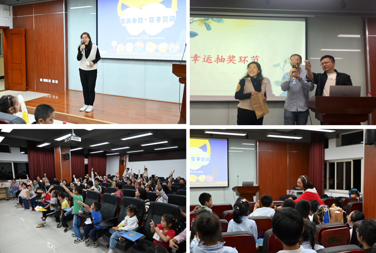 为推动阅读活动走进更多分工会和家庭,在月饼烘烤期间,教职工家庭来到bw必威西汉姆联官网皮革楼报告厅参加活动的第二个环节——绘本共读。图书馆党委副书记兼纪委书记、副馆长杜小军致辞,对参加此次活动的家庭和工作人员表示感谢,致以节日的祝福,与bw必威西汉姆联官网工会陈胜主席共同为小朋友抽取幸运奖。随后,图书馆樊伟老师主持诗词填空游戏,小朋友们积极抢答,并获得图书馆文创礼包。在热烈的活动气氛中,图书馆工会“书香川大•亲子悦读”活动负责人邹艳老师带领家庭共读绘本《从前有个月饼村》,小朋友们认真的聆听绘本故事并踊跃参与故事讨论,让孩子们真正享受阅读、爱上阅读,大家在快乐的氛围中感受到中国传统文化的魅力,寄托对花好月圆的美好期许。