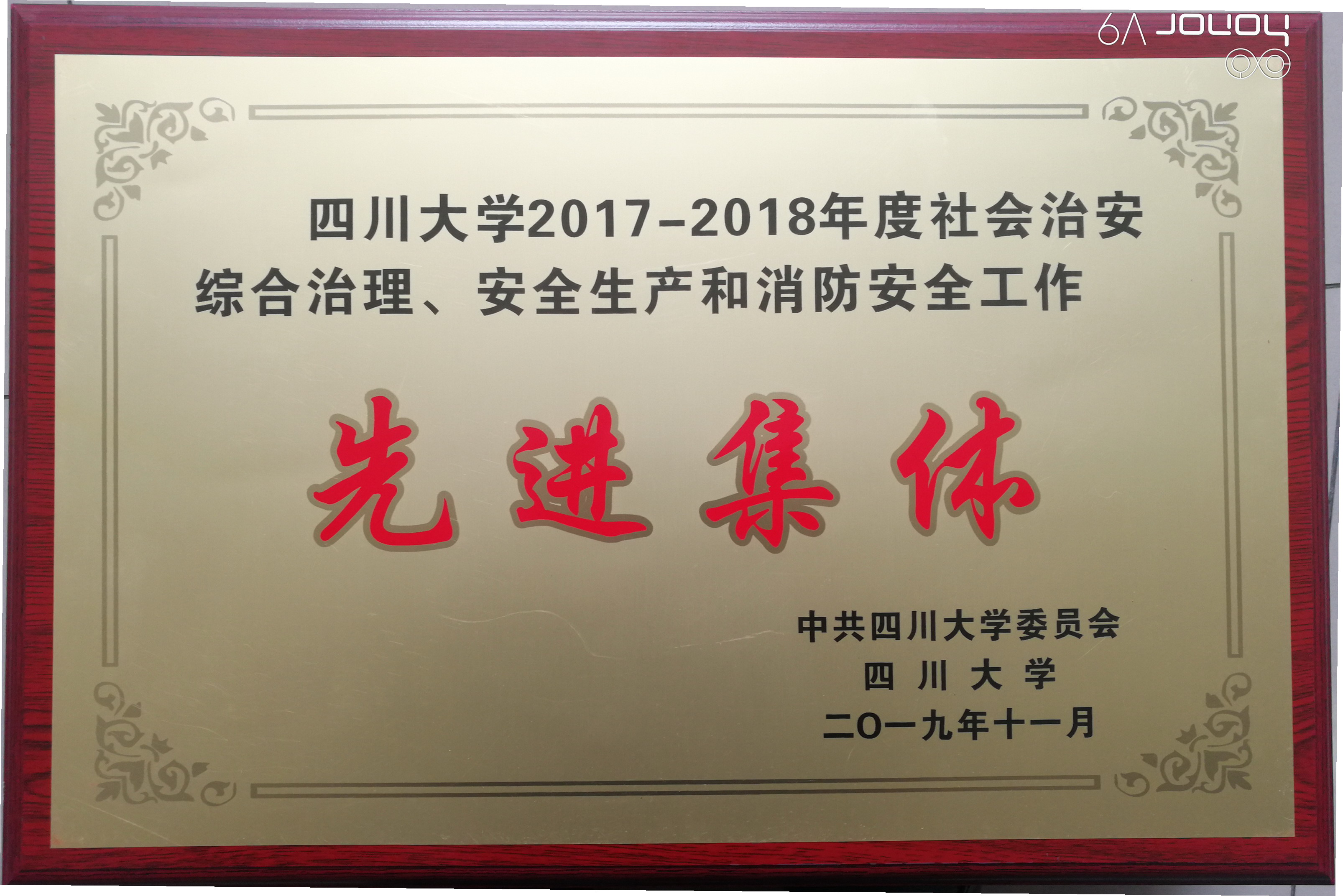bw必威西汉姆联官网获四川大学2017-2018年度社会治安综合治理、安全生产和消防安全工作先进集体及个人表彰