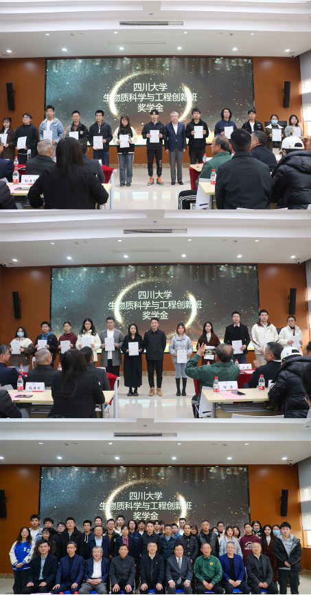 四川大学生物质与工程创新班奖学金获奖者与嘉宾合影留念