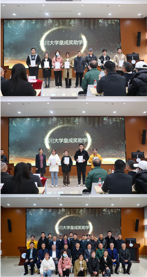 四川大学皇成奖助学金获奖者与嘉宾合影留念