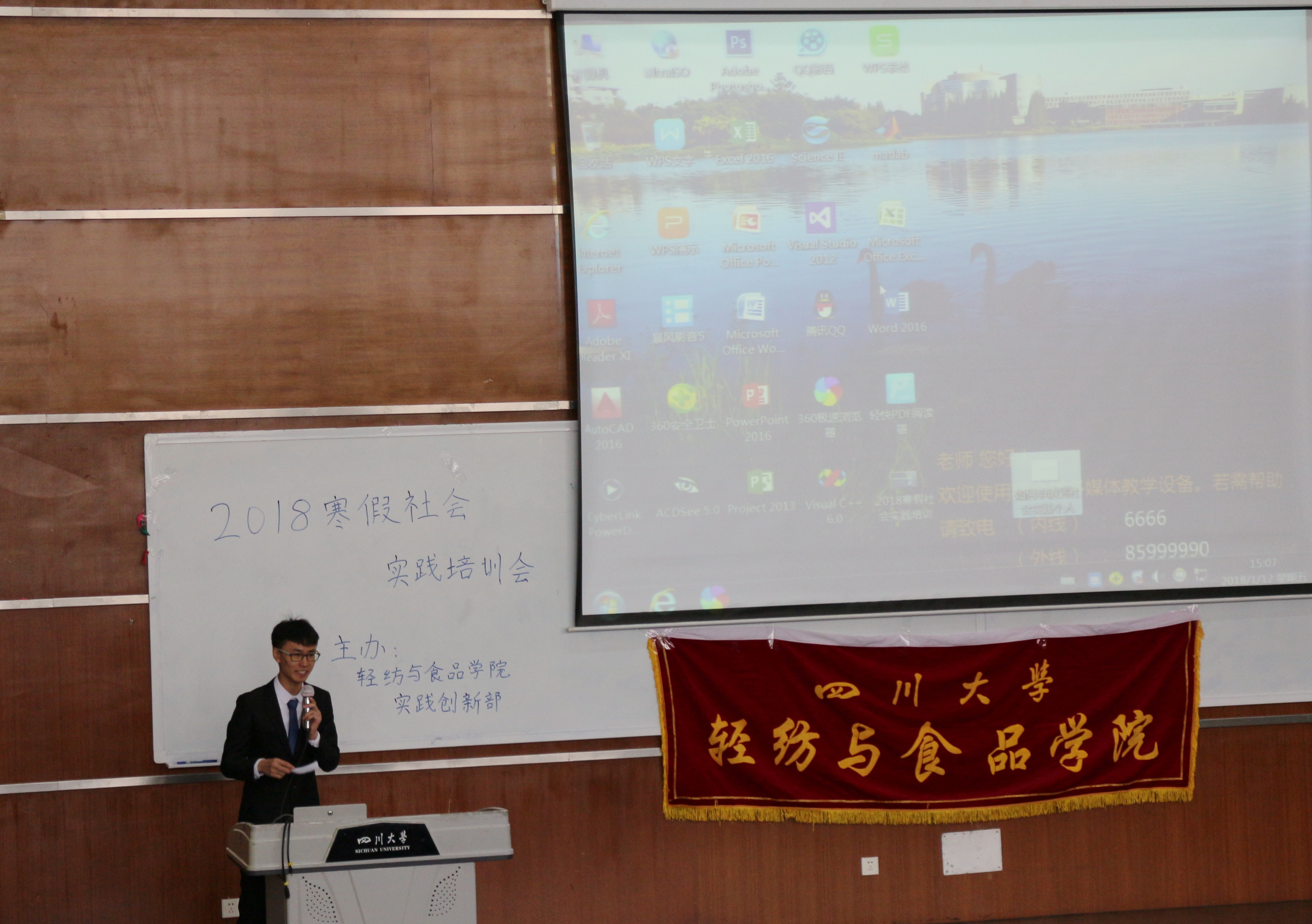 2018年1月12日下午15时,轻纺与食品学院2018年寒假社会实践行前培训会于江安综合楼C407顺利举行。bw必威西汉姆联官网2016级辅导员王舒灏老师,2017级辅导员向星烨、李杨老师,学院团委学生会部分学生干部,过往优秀实践团队代表以及参加本次实践的团队成员参加了此次会议。
