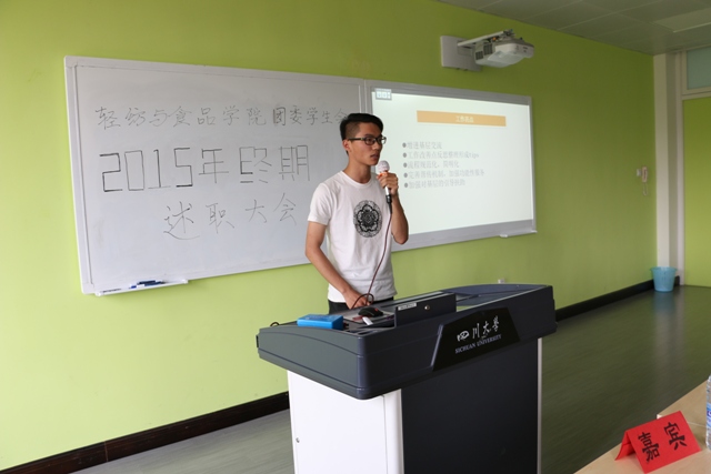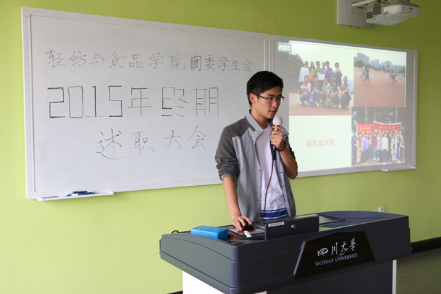 2015年4月24日,轻纺与食品学院团委学生会2015年学生干部述职大会在我校江安校区综合楼B座305教室举行。院团委记苏德强老师、团委学生会全体学生干部及部分干事参加了此次大会。