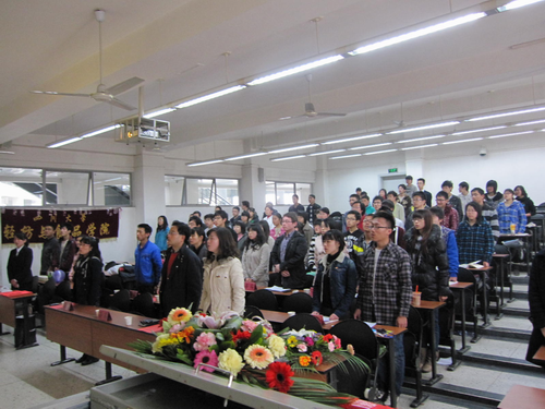 中午12点半,伴随着中国共青团团歌《光荣啊,中国共青团》,轻纺与食品学院和水利水电学院第三届联合团校开学典礼准时举行。稍后第一次团课的行课正式开始。主讲人为四川大学团委书记王斌副教授,其授课主题为:法治是我们这代人的历史使命。为了使同学们印象更深刻,王斌副教授从生活中的法治问题出发,阐述了法治的重要性、当代人的历史使命、为什么我们可以为法治做贡献以及我们怎样推进民主和法治建设这样四个方面的问题。最后还给在场的同学提出了三点殷切的希望:要树立信心,遵循社会原则,在校珍惜参与民主政治的机会。王斌书记的授课深入浅出,同学们纷纷表示,此次上课获益良多。