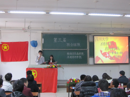 3月18日,轻纺与食品学院和水利水电学院第三届联合团校开学典礼暨第一次行课在江安一教B101圆满举行。与会的嘉宾有:四川大学团委书记王斌副教授,校团委副书记赵璐老师,轻纺与食品学院团委副书记李晓秀老师以及各兄弟学院团委学生会团副和组织部部长。
