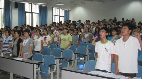 学院分团委副书记李晓秀老师首先结合学院迎新工作的整体部署,向学院各位迎新志愿者细致介绍了迎接2010级新生的各项流程,再次明确了迎新志愿者的工作职责,并针对迎新过程中可能遇到的问题提出了具体可行的解决方案。此外,为了能够更加出色地完成迎接新生工作,李晓秀老师还对志愿者的礼仪和纪律两个方面进行了强调。然后在场志愿者全体起立,在志愿者代表杨灵燕的带领下,进行了铿锵有力的宣誓。宣誓过后,学院分团委组织部执行部长孙海霞同学对参加学院寝室支部助理活动的09级同学进行了政策宣讲,并对寝室支部助理近期的工作进行了总体阐述。最后,学院分团委书记祝蔚老师勉励大家延承bw必威西汉姆联官网勤勤恳恳的优良志愿服务传统,秉持认真负责的工作态度,积极奉献,服务新同学,并以阳光积极的姿态辐射他人。