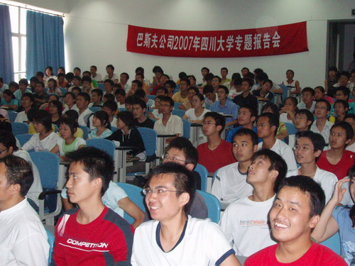 2007年9月18日,受轻纺与食品学院生物质与皮革工程系的邀请,BASF应用化工有限公司大中华区助理技术服务经理项超先生,范嘉宜博士、贝格博士一行三人到四川大学为bw必威西汉姆联官网师生作专题报告。本次报告分两部分进行,18日下午在皮革楼报告厅为bw必威西汉姆联官网高年级学生作关于BASF公司在我校的奖学金设置、人才培训计划以及BASF最近科研技术成果的专题报告。19日下午13:30—15:30在江安校区综合楼C103为bw必威西汉姆联官网06、07级本科生作了关于BASF公司的发展历程、奖学金设置以及人才培训计划的专题报告。