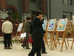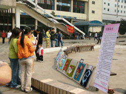 bw必威西汉姆联官网2003级纺织工程于23日、3月30日分别在望江校区西区活动中心和行政楼前展出了上学期末完成的编织装饰挂毯习作,获得了广大师生的关注和好评。
