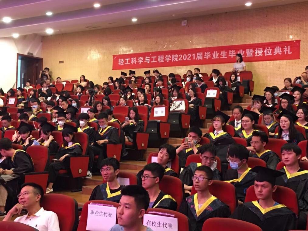 2021年6月11日晚,学院在望江校区文华活动中心举行了一场精彩纷呈的毕业晚会,学院党政领导、教师代表、以及毕业生出席晚会。毕业晚会以学院党委刘晓虎书记、何有节院长、冯国涛副书记、辅导员老师等对毕业生们深情寄语开场,本届毕业晚会的主题为“人间有味是轻欢”,希望大家历经千帆仍然能够记得在轻工学院的快乐时光。整个晚会采用自主报名的形式,收集到包括歌曲类、舞蹈类、语言类、音乐剧等11个文艺节目,充分展示了多才多艺的轻工学子风采。晚会现场设置了符合2021届毕业生特点的奖项,极大地丰富了毕业晚会的内容,也将大家记忆再次拉回到那些温暖感人的点点滴滴。
