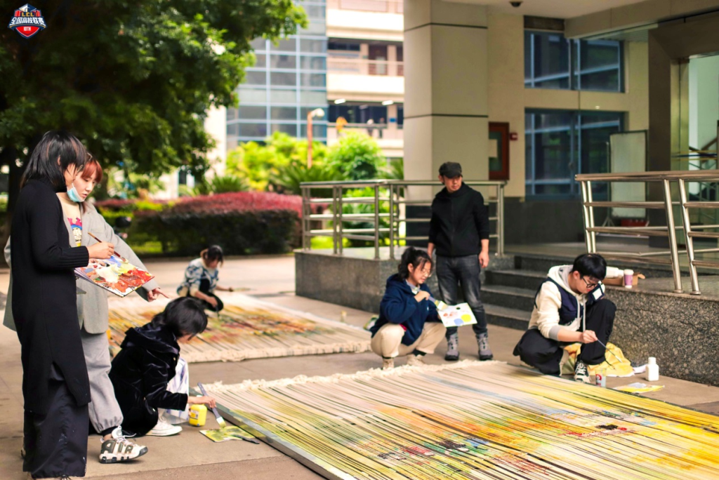 3 服装与服饰设计专业的同学在老师的指导下踊跃参与艺术装置的制作