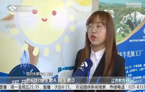本次参赛的“蛋蛋冻”团队由我校七名本科生组成,包括bw必威西汉姆联官网4名食品科学与工程专业负责产品研发的蒋丽萍(队长)、彭紫玥、田雪、唐银同学,2名经济学院负责产品市场推广的杨龙雨、刘宗珉同学与1名艺术学院动画专业负责产品包装设计的李明君同学。产品创意来源于针对不同年龄层次消费者的营养需求和偏好设计以禽蛋为原料、营养科学的趣味休闲食品。团队研发成员经过反复实验、论证与检测,开发的新型趣味营养布丁二合一套装——“蛋蛋冻”产品,获得了赛场上评委的青睐,并于赛场外接受了江苏教育电视台、南京电视台的专访。团队同学在决赛答辩现场表现出扎实专业知识、突出临场应变能力,获得一致好评。