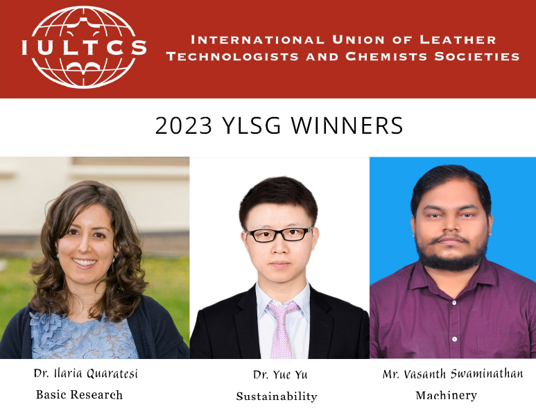 YLSG是由IULTCS研究委员会(IUR)组织的评审委员会评选,授予年龄在35岁以下的年轻科学家,是国际皮革科技领域青年学者的最高荣誉2023年度共有3皮革科技工作者获奖。除余跃副研究员获“青年皮革科学家——可持续发展奖”外,罗马尼亚布加勒斯特皮革和制鞋研究所Ilaria Quaratesi博士荣获“青年皮革科学家——基础科研奖”,印度金奈安娜大学的Vasanth Swaminathan博士生荣获“青年皮革科学家——机械科研奖”。