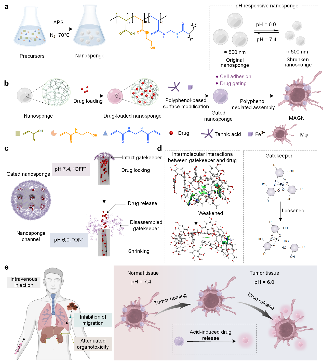 金属多酚修饰的纳米海绵与巨噬细胞结合可抑制肿瘤生长