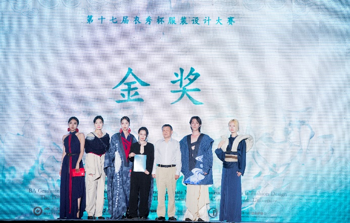 石碧院士为第17届衣秀杯服装设计大赛金奖选手颁奖