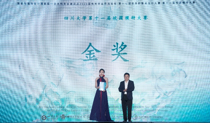 四川大学党委副书记郭勇教授为第11届校园模特大赛金奖选手颁奖
