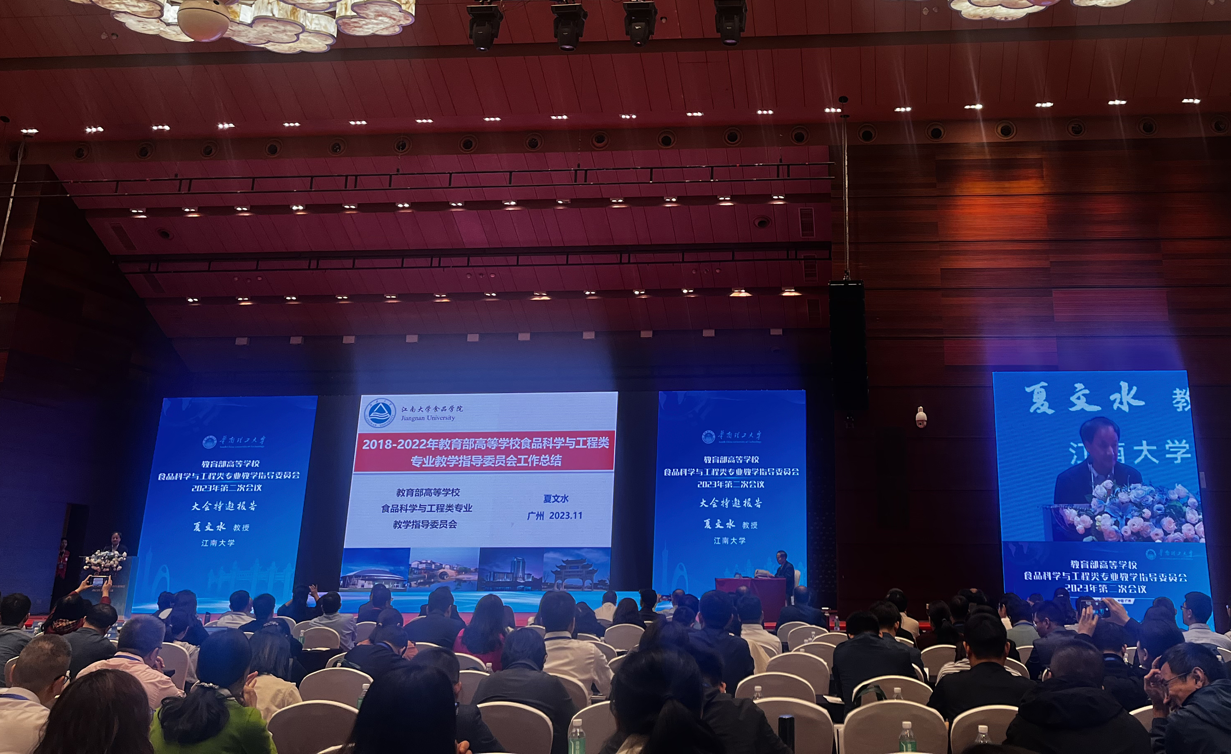 教育部高等学校食品科学与工程类专业教学指导委员会暨教学研讨会2023年第二次会议于2023年11月23-25日在广州召开。教育部高等学校食品科学与工程类专业教学指导委员会主任、副主任与委员,广东省教育厅高教处姜琳处长,以及来自国内127所高校的食品学院领导、食品科学与工程类专业或教学负责人等出席本次会议。bw必威西汉姆联官网食品工程系何强、迟原龙、吕远平、段飞霞、董怡、黄伦杰老师,应邀出席大会,何强教授作为教指委委员全程参加各项议题及主题研讨,并主持大会专题交流报告“食品类高校课程建设与改革交流”。