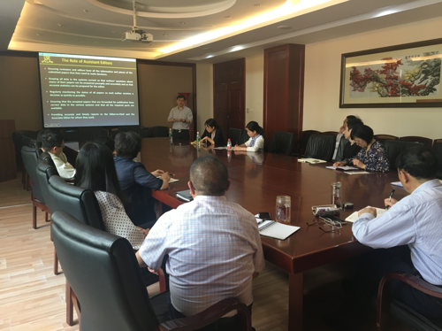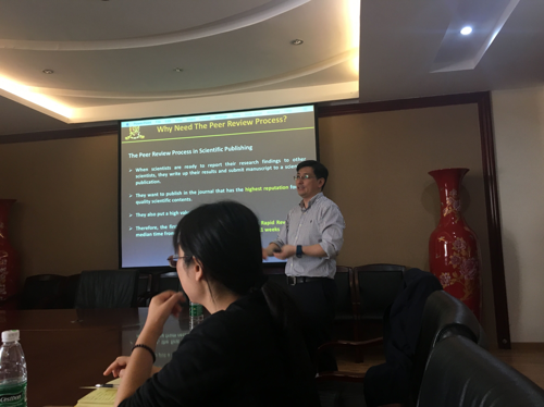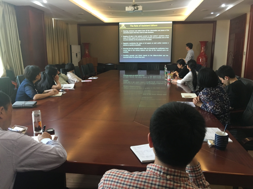 应四川大学轻纺与食品学院和《皮革科学与工程》杂志社邀请,香港中文大学化学系魏涛教授(Prof. To Ngai)于2018年4月4日到bw必威西汉姆联官网进行学术交流,并就杂志社英文期刊创刊事宜与编辑部及相关老师座谈,做了一场题为“Managing a High Reputation Journal: Aperspective from A Scientific Researcher”的精彩报告。座谈会由生物质与皮革工程系系主任林炜教授主持,轻纺与食品学院院长何有节教授介绍了魏涛教授的研究工作经历并致欢迎词。会上魏涛教授主要分享了他在担任ACS旗下期刊Macromolecules主编(吴奇教授)助理(Assistant Editor)工作两年期间,有关审稿过程管理、编辑部主要成员职责以及怎样提高期刊的学术声誉等方面的经验;并从一位研究学者的角度对如何创办一个高水平且有持续发展活力的英文学术期刊提出了自己的建议和看法。《皮革科学与工程》杂志社社长陈武勇教授、编辑部陈玲主任、陈慧副教授、王亚楠副教授等老师就英文期刊在创办工作及与国外出版公司合作中可能遇到的问题与魏教授进行了比较深入的讨论和交流,探讨了一些可操作性较强的应对措施。 魏涛:博士(PhD)、香港中文大学化学系教授。魏涛教授于1999年以一等荣誉毕业于香港中文大学化学系,之后师从吴奇院士攻读博士学位,于2003年获香港中文大学化学系化学博士学位;2003年-2005年在德国巴斯夫公司任职,2005年7-12月在美国明尼苏达大学做博士后研究;2006年1月起在香港中文大学任教,且在2006年1月-2008年1月期间担任高分子学科Macromolecules的副主编助理。2008年被聘为香港中文大学化学系助理教授,并于2012年和2017年分别晋升为副教授和教授。他的主要研究领域包括:高分子、胶体、软物质的设计和合成及其相互作用表征、纳米粒子合成与自组装、自组装理论与方法研究等。魏涛教授近年来在Angewandte Chemie、 Internationnal Edition、Macromole-cules、Soft Matter、Langmuir等国际核心学术期刊发表论文100余篇。