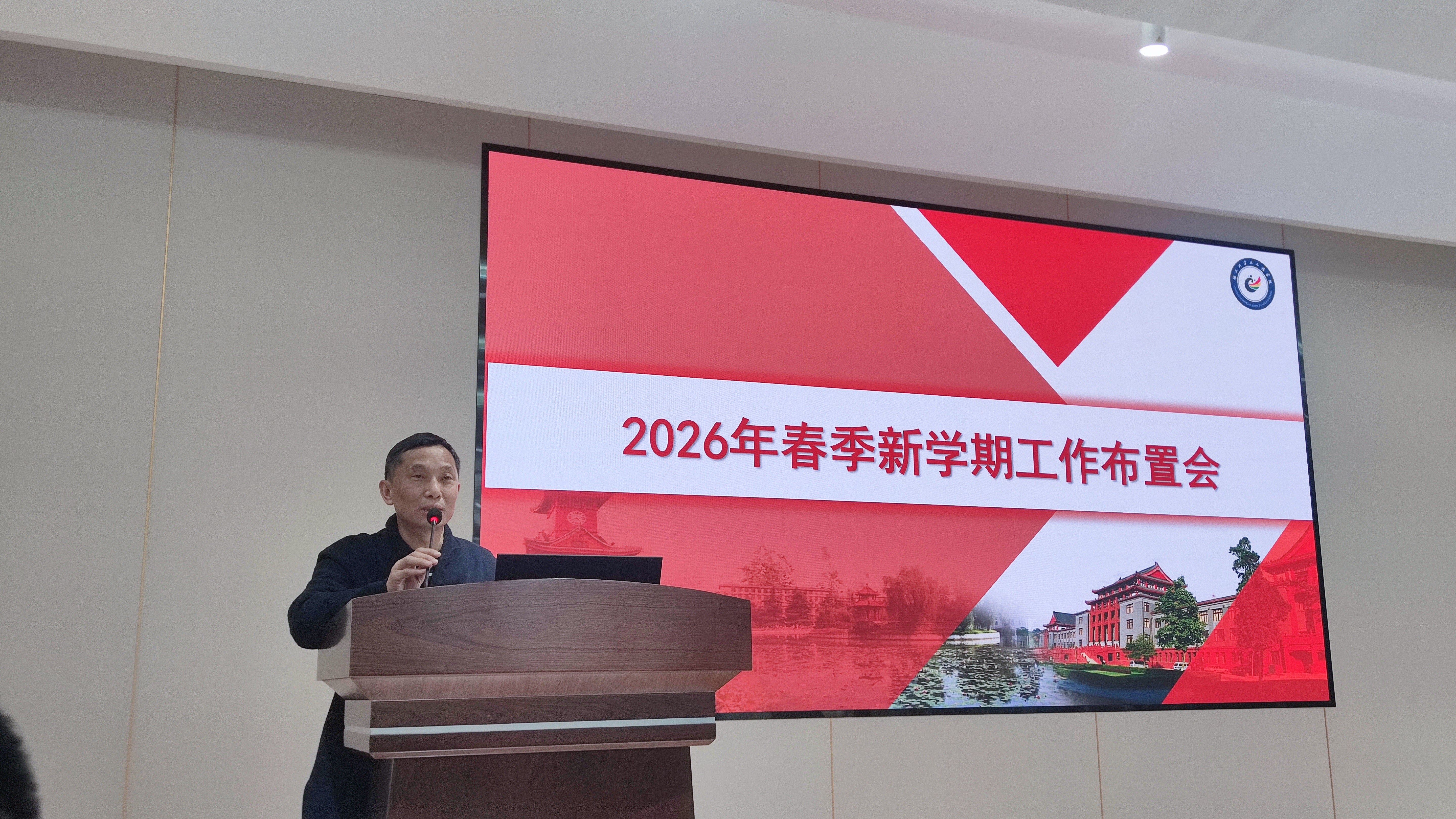 李天富书记首先传达了学校新学期工作布置会精神,通报了学校《2026年工作要点》中的年度重点任务。他指出,全院教职工要提高政治站位,扎实开展树立和践行正确政绩观学习教育,严格压实意识形态工作责任,持续深化“三个一流”创建工作;要坚持人才强院战略,加大高层次人才育引工作,稳步推进“一院一策”职称评价改革,激发人才队伍活力;要坚守立德树人根本任务,严守师德师风底线,着力营造风清气正、团结协作、务实干事的良好育人氛围。