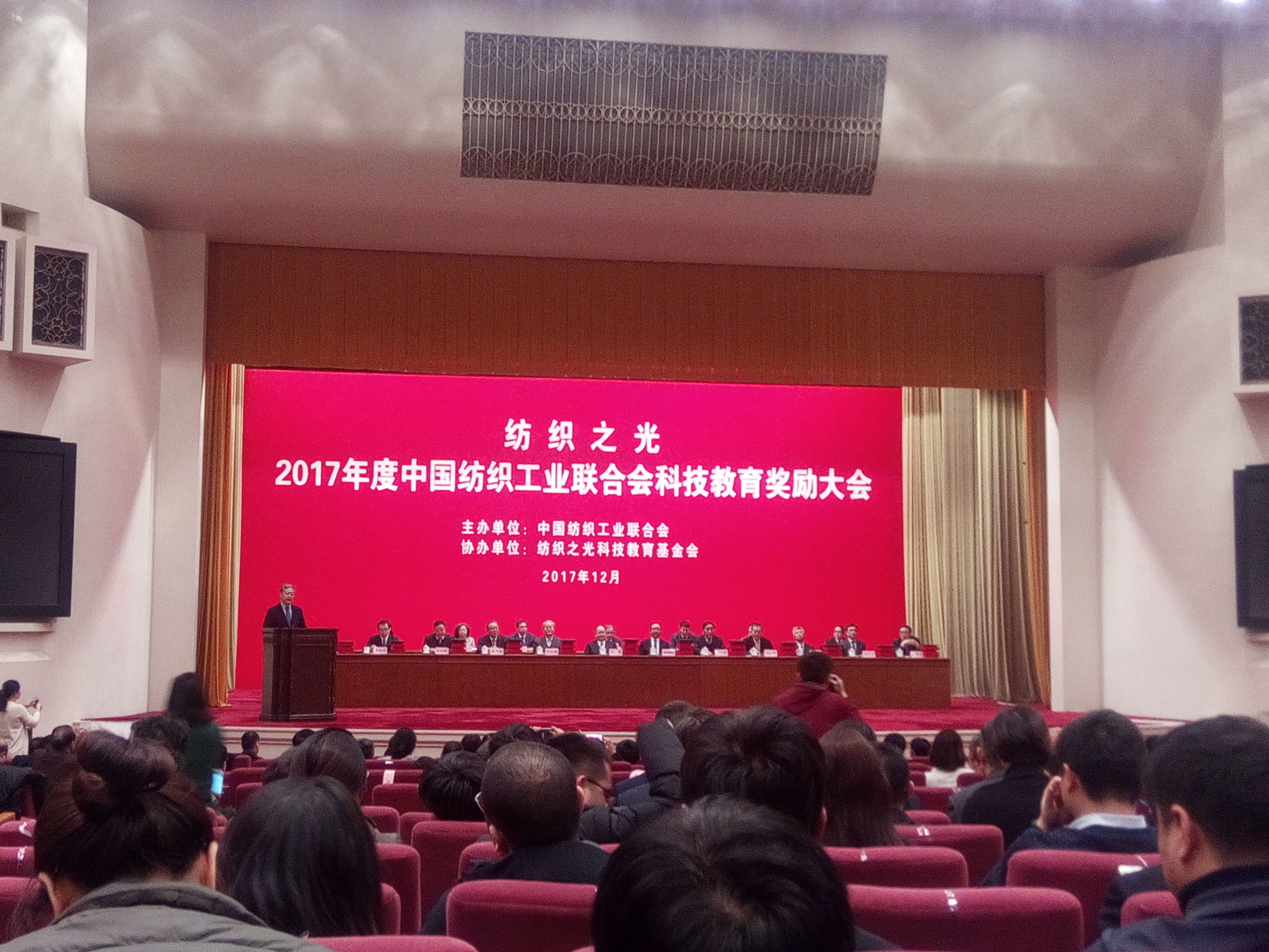 “纺织之光”2017年度中国纺织工业联合会科技教育奖励大会于2017年12月18日在北京人民大会堂隆重召开。bw必威西汉姆联官网纺织与服装工程系获中国纺织工业联合会教学成果奖3项。其中郭荣辉等成果获教学成果二等奖,张皋鹏和申鸿等成果分别获三等奖,陈胜老师获教师奖,5位学生获学生奖。