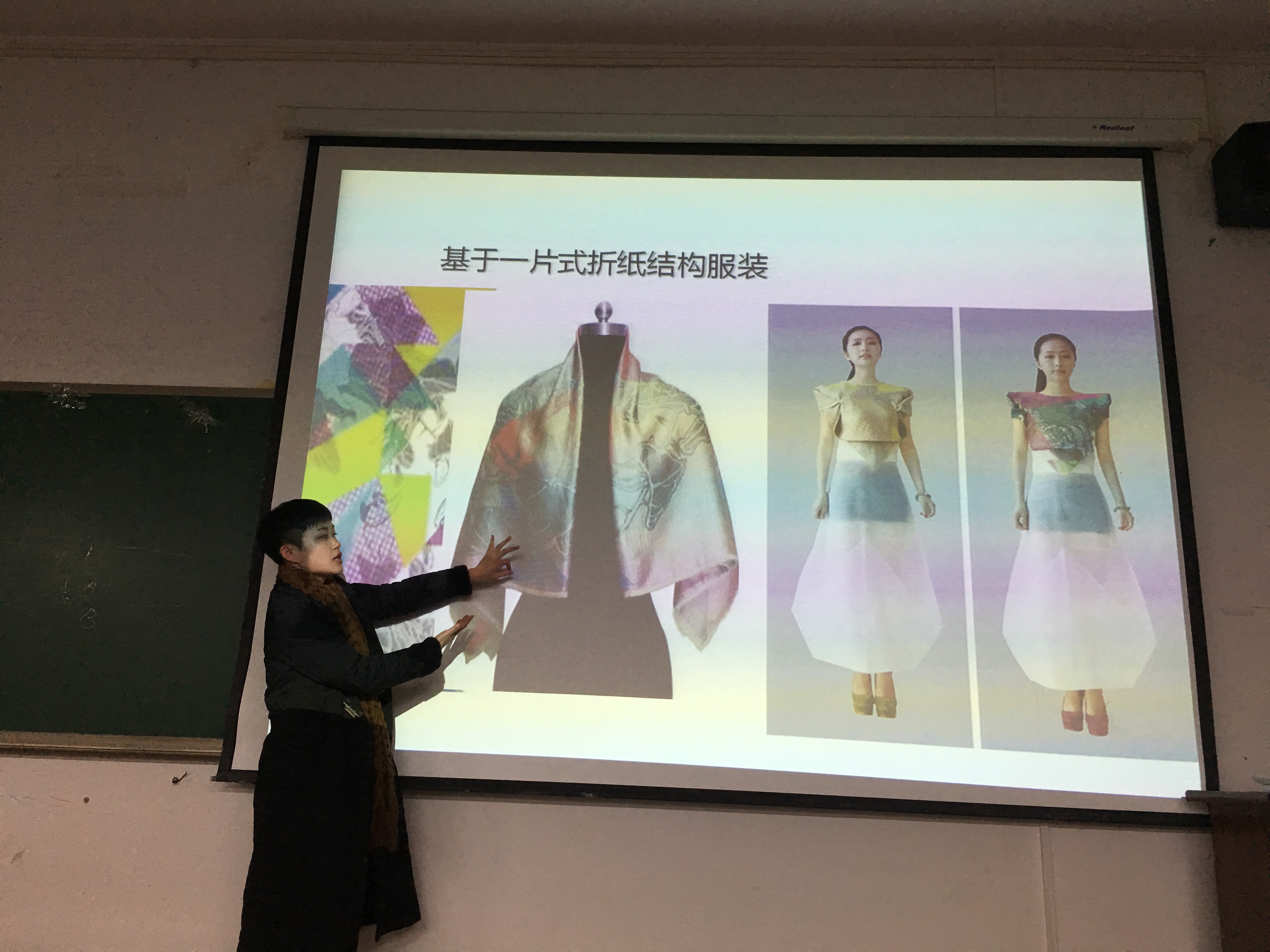 王雪琴副教授介绍了她的研究背景及研究领域,对浙江理工大学人才培养采用艺工商培养模式,与丝绸产业建立的基地及实验室等情况进行介绍。另外介绍了丝绸创意设计及无缝设计、基于一片式折纸结构服装、丝绸消费及文化、奢侈品牌运作模式、与浙江丝绸企业联合开发的产品;浙江万缕丝与雕平绣加工、香云纱制作工艺;传统丝绸工艺案例分析-万事利、达利丝绸、艾德来丝、云锦进行介绍;丝绸消费路径与模式变化、服装发展趋势等方面取得的最新成果。