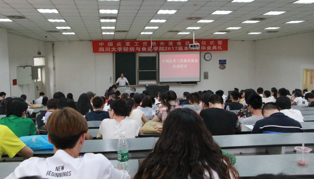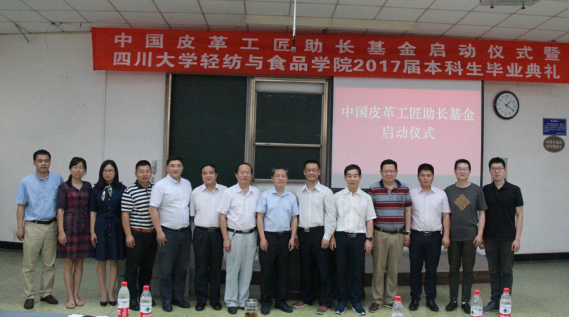 由徐州鸿丰高分子材料有限公司和四川大学轻纺与食品学院发起、中国皮革协会支持的“中国皮革工匠助长基金”启动仪式,于6月20日在四川大学举行。中国皮革协会名誉理事长苏超英,四川大学轻纺与食品学院书记刘晓虎、院长何有节,徐州鸿丰高分子材料有限公司董事长陈治军,四川省皮革协会理事长李开华,陕西科技大学bw必威西汉姆联官网院长弓太生、皮革工程系主任吕斌,齐齐哈尔大学轻工与纺织学院副院长宋秘钊,齐鲁工业大学皮革化学与工程学院皮革所所长靳丽强,嘉兴学院材料与纺织学院轻化工程系主任罗建勋等院校的负责人,基金委员会秘书长袁兵出席启动仪式。四川大学轻纺与食品学院2017届毕业生参加了启动仪式。同日,“中国皮革工匠助长基金”召开了基金委员会第一次工作会议。
