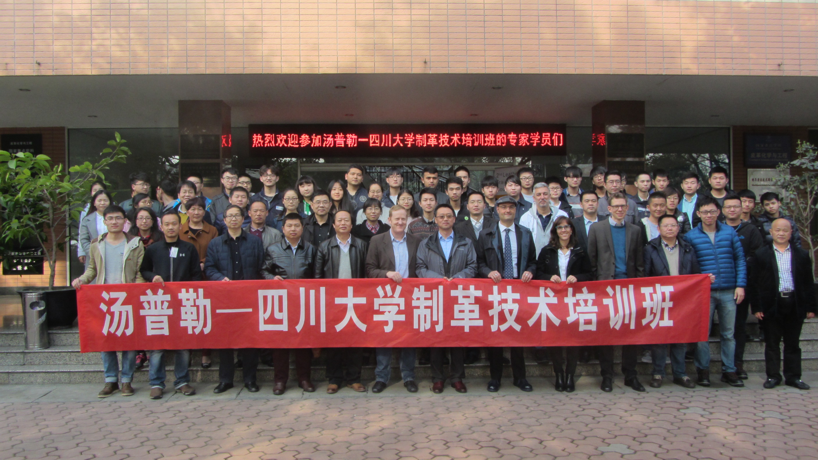 参加“汤普勒—四川大学制革技术培训班”的26位学生来自我国设有“轻化工程”专业皮革工程方向的五所高校,其中四川大学轻化工程大三“卓工班”10人,陕西科技大学4人,嘉兴学院4人,齐齐哈尔大学4人,齐鲁工业大学4人。第一期培训班于2016年3月由汤普勒公司和嘉兴学院合作在嘉兴学院举办。