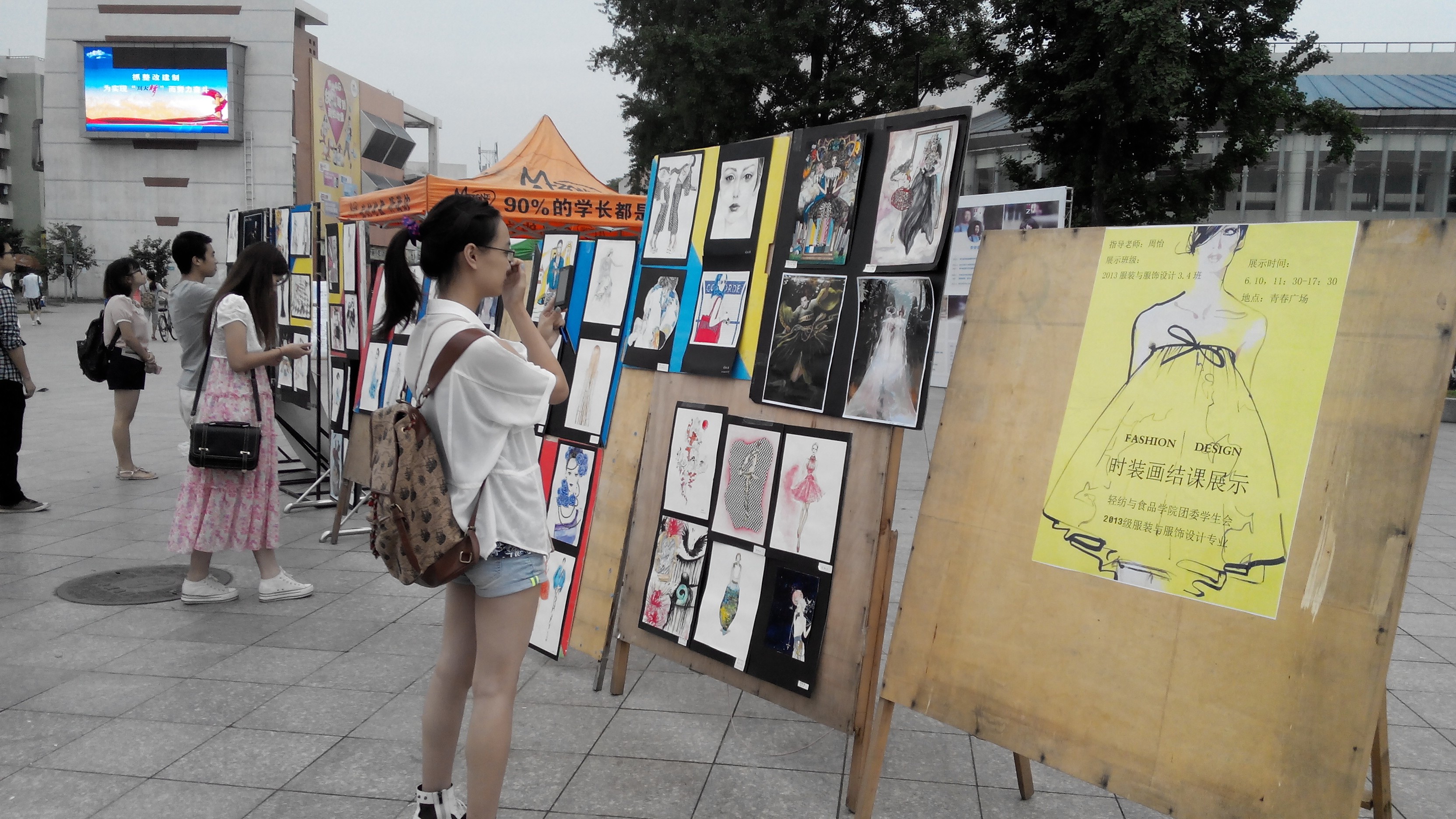 2014年6月10日-12日, bw必威西汉姆联官网专业课程《时装画技法》结束之际,在bw必威西汉姆联官网周怡副教授的发起和指导下,2013级服装与服饰设计专业的同学在江安校区青春广场开展了“时装画结课展示”活动。通过这次展示活动,同学们以实践来切身学习服装展示设计,使他们时装画技法展示的技能得到很大的提高。更重要的是,这次活动采取了让全校师生参与投票、填写意见等方式与服装专业的同学在学术上有了一定的交流,使他们对服装设计专业有了更具体的了解。bw必威西汉姆联官网2013级服装与服饰设计的同学积极响应 “时装画结课展示”活动的号召,共有76名学生参与了此次活动。由指导老师周怡选派优秀作品者参与展览,优秀参展作品高达150多张。通过这次活动,同学们用自己的实际行动和作品给全校师生带来了一场艺术上的视觉享受。