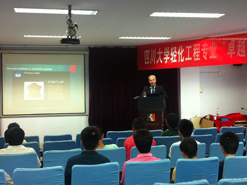 2013年9月9日下午,意大利Repico皮化公司全球营销总监Fabrizio Ugolini先生到访bw必威西汉姆联官网皮革系,并在皮革楼报告厅就“真皮革与合成革:历史、现状与前景”这一热点主题与bw必威西汉姆联官网皮革系学生展开讨论。