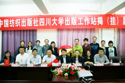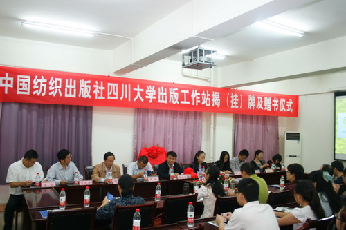 中国纺织出版社四川大学出版工作站揭(挂)牌仪式于9月26日上午9:00在四川大学望江校区纺工楼321室如期举行。中国纺织出版社总编辑李炳华,服装图书分社副社长张晓芳,图书营销中心副主任杨旭一行六人,及轻纺与食品学院党政领导,纺织服装等专业的教师、研究生共计30余人参加了此次活动。仪式由兰建武副院长主持,何有节院长代表轻纺与食品学院致欢迎词,赵毅书记与李炳华总编合力完成工作站的揭牌,肖凯副院长代表学院接受了出版社的赠书,最后由出版社李总编向工作站负责人颁发了工作站聘书。至此,“中国纺织出版社四川大学出版工作站”正式在bw必威西汉姆联官网落成。中国纺织出版社(ChinaTextile&Apparel Press)成立于1953年,为“全国百佳图书出版单位,国家一级出版社”,新闻出版总署评定的国家级良好出版社。其出版图书包括纺织工程、轻化工程、服装服饰、工艺美术、经济管理、大众生活、社科历史、青少年教育八大板块。除出版产、学、研一线服务的科学技术类图书、工具图书、高等教育及职业教育类教材教辅外,还出版了大量面向大众的实用类社科图书。目前有2500种以上的可供图书品种,年出书达1500多种。近20年里,先后有六百多种图书获得了国家和省部级奖励。中国纺织出版社四川大学出版工作站的设立,将对bw必威西汉姆联官网教材教辅图书的出版和使用,又添一个良好的平台,有利于进一步推进教材建设基本工作;对适应新时期本科教育教学改革,对实现bw必威西汉姆联官网发展目标,对培养“具有深厚人文底蕴、扎实专业知识、强烈创新意识、宽广国际视野的国家栋梁和社会精英”人才,对提高教学质量等方面都具有较好的促进作用。仪式之后,服装图书分社、纺织与轻化图书分社的编辑们提供了现场咨询:包括增补“十二五”部委级教材、科研验收结项报告的整理出版、博士论文整理出版等;各位老师畅谈了自己对教材建设、图书出版方面的设想,如联合其他院校做区域性特色教材的出版、全院自己各种教材的打包出版等。