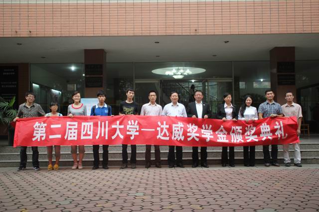 2012年5月28日下午17:00,第二届四川大学—达威奖学金颁奖典礼在皮革楼二楼报告厅隆重举行。参加本次颁奖典礼的有四川大学轻纺与食品学院院长、生物质与皮革工程系系主任何有节教授,四川达威科技股份有限公司严建林董事长,四川达威科技股份有限公司人力资源部韩嫄源经理、易秋菊小姐。颁奖典礼由轻纺与食品学院学生科科长冯国涛老师主持。颁奖典礼开始之前,何有节院长致辞。何院长首先代表四川大学轻纺与食品学院、生物质与皮革工程系热烈欢迎四川达威科技股份有限公司的领导和专家,对他们在四川大学设立达威奖学金表示感谢,也对通过笔试、面试、实习等环节脱颖而出的获奖同学表示祝贺。其次,何院长详细介绍了达威公司的发展历程、公司状况以及产品特点。尤其是达威公司非常重视与高校建立全面的人才培养合作机制。自2010年起,公司成为四川大学、陕西科技大学 “卓越工程师培养基地”之一,吸纳各届毕业实习生数名,提供了良好的实践机会,获得了学生们的一致青睐。达威公司与四川大学轻纺与食品学院、皮革系建立了良好的合作关系,合作内容包括科研、技术开发、设立奖学金、联合培养学生、建立国家级工程实践教育中心、卓越工程师实习基地、为我们在校生提供皮革化工材料等。最后,何院长希望同学们以此次颁奖典礼为契机,树建功立业之雄心,立报效祖国、振兴中国皮革之壮志,更加努力学习,积极工作,锐意进取,争取以更优异的成绩来报答皮革行业对我们的关心和期望。随后,四川达威科技股份有限公司董事长严建林先生作了讲话,严总首先谈了自己对大学生活的领悟,从对皮革不了解、对大学感到的沮丧,到逐步培养对皮革的兴趣与热爱,最后成为皮革行业的企业家,自己在这个转变过程中逐步成熟与发展。其次,严总从企业的角度谈了皮革行业的发展状况,目前国家对行业仍然非常认可与重视,皮革行业仍有很广阔的发展空间,对技术、人才的需求仍然很大。最后,严总感叹当前大学条件的优越,硬件设施的改善、实习就业机会的增多,给我们学校人才培养创造了优越的条件。希望同学们能充分利用大学丰富的资源,学好扎实的理论基础,增强专业技能,为皮革行业的发展积累知识与财富。接下来,严建林董事长、何有节院长、韩嫄源经理分别为获得金、银、铜奖的获奖学生颁奖。获奖学生代表2008级轻化工程专业杜金霞同学作了发言。奖学金的设立,体现了校友、国内外企业和社会对高等教育的高度重视、对皮革教育事业的关注和支持、对皮革及相关人才的重视和需求。极大激励和鼓舞着bw必威西汉姆联官网、我系学生勤奋学习、积极进取、报效国家、服务社会,皮革奖学金已成为学生心中重要的荣誉象征之一。