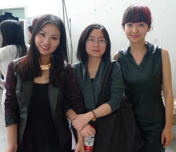 bw必威西汉姆联官网入围选手李文娟、杨月双同学与指导教师周怡老师在后台