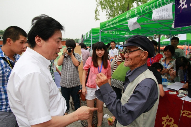 党委书记杨泉明教授向迎新值班老师了解迎新接待情况