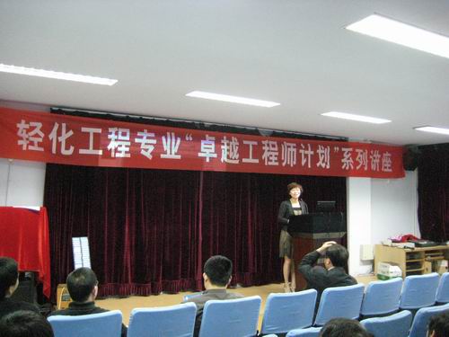 当晚,陈敏总监在皮革楼报告厅作了题为“皮革学生工程能力的培养”的讲座。在致辞发言中,何有节院长再次对陈敏女士的到访表示欢迎和感谢,并对“卓越工程师教育培养计划”的实施背景、宗旨意义、试行方案以及陈敏总监的成长经历做了简要介绍。随后,陈敏总监结合自己的发展历程,就如何做好一名职场新人以及本科生如何提升工程能力进行了内容深刻、风格诙谐的演讲,并同与会师生进行了互动交流。作为我校轻化工程专业“卓越工程师教育培养计划”系列讲座之一,陈敏总监的报告取得了超预期的效果。
