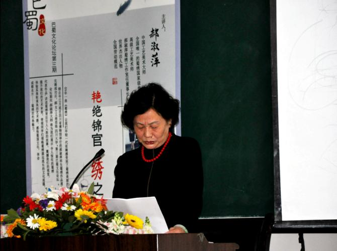 由四川大学研究生会主办,轻纺与食品学院研究生分会、轻纺与食品学院纺织工程教研室承办,历史文化(旅游)学院研分会、华西药学院研分会协办的第三期巴蜀文化论坛于4月16日晚19点在研究生院1-102j举行。本次论坛的主题是“艳绝锦官,绣之美”专题学术讲座,介绍独具巴蜀文化特色的“蜀绣文化和技艺”。轻纺与食品学院纺织工程教研室特别邀请到了中国工艺美术大师、全国唯一的蜀绣国家级传人、世界艺术杰出名人、全国劳模、全国三八红旗手郝淑萍大师主讲。本校众多研究和关注蜀绣文化及技艺的博士生、研究生、本科生聆听了郝淑萍大师的精彩演讲,轻纺与食品学院老师以及诸多社会人士也慕名莅临了此次论坛。 郝大师为本次论坛做了很高学术水平的演讲,她从蜀绣的起源开始,娓娓讲述了蜀绣的发展和历史变迁,尤其历数了解放后蜀绣在党和国家的关怀下从频临灭绝到蓬勃发展的各个历史性阶段;郝大师也痛心的谈及了文革期间蜀绣遭受的毁灭性破坏。在郝大师历时两个多小时的演讲中,我们更感受到了她对蜀绣的不懈追求和希望蜀绣能更好传承、发展的殷切期望。郝淑萍大师13岁开始学艺,从事蜀绣工作50年,她手上的针线见证了蜀绣的兴衰与变迁。在蜀绣被列为“非物质文化遗产”受到各方关注的今天,年过花甲的郝淑萍大师对蜀绣的传承和发展充满了信心:“国家重视,公众认同,市场开放,对我们这些从艺人来讲,传承老手艺千载难逢的机会到了”。此行郝大师不计报酬到学校演讲不但为了传播、宣传蜀绣,她更希望吸引学校中高学历、高素质人才加入蜀绣的队伍,使蜀绣这一古老技艺在新的环境下能更高更好的传承和发展,她的渴望和召唤令同学们感动。 芊芊手执绣花针,带着五彩丝线于软缎丝绡上翩翩起舞,蜻蜓点水般轻盈的刺绣,好似优雅的芭蕾。这一特殊的“芭蕾”,郝淑萍已经跳了整整50年。她的辉煌艺术成就引来阵阵惊讶和赞叹!演讲中郝大师展示了她和她的学生们创作的一幅幅美轮美奂的、代表蜀绣纹样和针法特色的作品:《芙蓉鲤鱼图》、《九寨沟大熊猫图》、《瑞照丰年》、《卓文君》、《峨眉杜鹃》、《昭君出塞》、《仕女打马球》…无论是缤纷的单面绣还是神奇的双面绣和奇异的异形异色绣,幅幅堪称神奇,无不令师生们叹为观止。 郝大师还针对同学们的提问对最代表蜀绣特色的二三针、全三针、锦纹针等针法进行了详尽的讲解。郝大师的演讲深深吸引着在座的每一位师生,她的演讲不时引起热烈的掌声和阵阵的惊叹,整个讲座座无虚席。不少同学认真记录着笔记,演讲结束后同学们还不愿离去,争相与郝大师交流讨论。一个同学感叹“早就该举行这样的讲座了”。此次演讲产生的热烈反响必将更好的促进我校尤其是轻纺食品学院的教学科研,也使每位在场的听众对中国四大名绣之蜀绣有了更深刻的认识与了解,为蜀绣传播推广起到良好的作用。 本次演讲得到了轻纺学院领导的肯定和支持,也得到四川省工艺美术协会的大力支持。