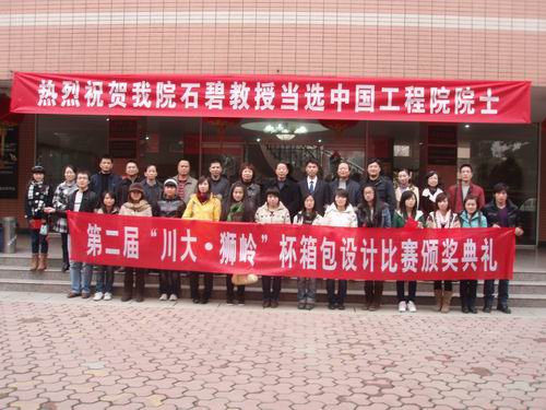 2009年12月8日下午16:30,第二届“川大·狮岭”杯箱包设计比赛颁奖典礼在皮革楼报告厅隆重举行。参加本次颁奖典礼的嘉宾有狮岭镇镇长徐伟新先生、镇纪委书记刘欢容女士、联合村书记冯金生先生、义山村村长钟志锋先生、司法所长邵庆銮先生、外管中心书记于伟成先生、自来水公司经理黄天湖先生以及狮岭镇皮革皮具产业研究中心博士后焦利敏女生、轻纺与食品学院院长陈武勇教授、副院长何有节教授、党委副书记刘晓虎副教授、革制品设计方向曾琦老师、姚云鹤老师及学生工作组李晓秀老师。所有参赛选手及革制品方向、服装设计与工程专业部分同学参加了此次颁奖典礼,颁奖典礼由冯国涛老师主持。 陈武勇院长首先代表学院致辞,对狮岭镇政府长期以来对四川大学的支持与关注,在我校设立奖学金表示衷心的感谢,对徐镇长及团队能在百忙之中亲临颁奖典礼现场表示热烈的欢迎,并对所有通过自己的设计、创作而获奖的同学表示由衷的祝贺,希望他们不要辜负设奖单位的期望,再接再厉,争取创造出更加优秀的作品。随后,徐镇长代表狮岭镇政府、党委发表了热情洋溢的讲话,他首先对学院的邀请表示感谢,对获奖同学表示祝贺,并热忱邀请各位老师到狮岭参观、指导;欢迎各位同学毕业后到狮岭创业就业,为狮岭皮革、皮具产业的发展贡献力量。同时,徐镇长还详细介绍了狮岭皮革、皮具及其他方面发展状况,他讲现在狮岭是原辅材料的集散地,已经形成了皮革制品的设计、生产、销售为一体的产业发展链,并注重与高校,特别是四川大学在产学研方面的合作,以进一步提升狮岭皮具之都的品牌形象。接下来,由徐镇长、刘欢容书记、冯金生书记、钟志锋村长、何有节教授、刘晓虎书记一起为本届设计大赛获奖同学颁发荣誉证书。最后,2007级革制品设计方向的张栋同学代表所有获奖同学作了发言,他首先对设奖单位表示感谢,并与同学们一起分享了这次比赛当中自己的心得体会,体现了创作的艰辛过程,更表达了获奖之后的喜悦心情。并表示在以后的学习中,定将倍加努力,不辜负老师、企业的一片期望。 颁奖典礼结束后,徐镇长一行还参观了制革清洁技术国家工程实验室,与川大师生进行了深入的交流与互动。轻纺与食品学院2009年12月9日