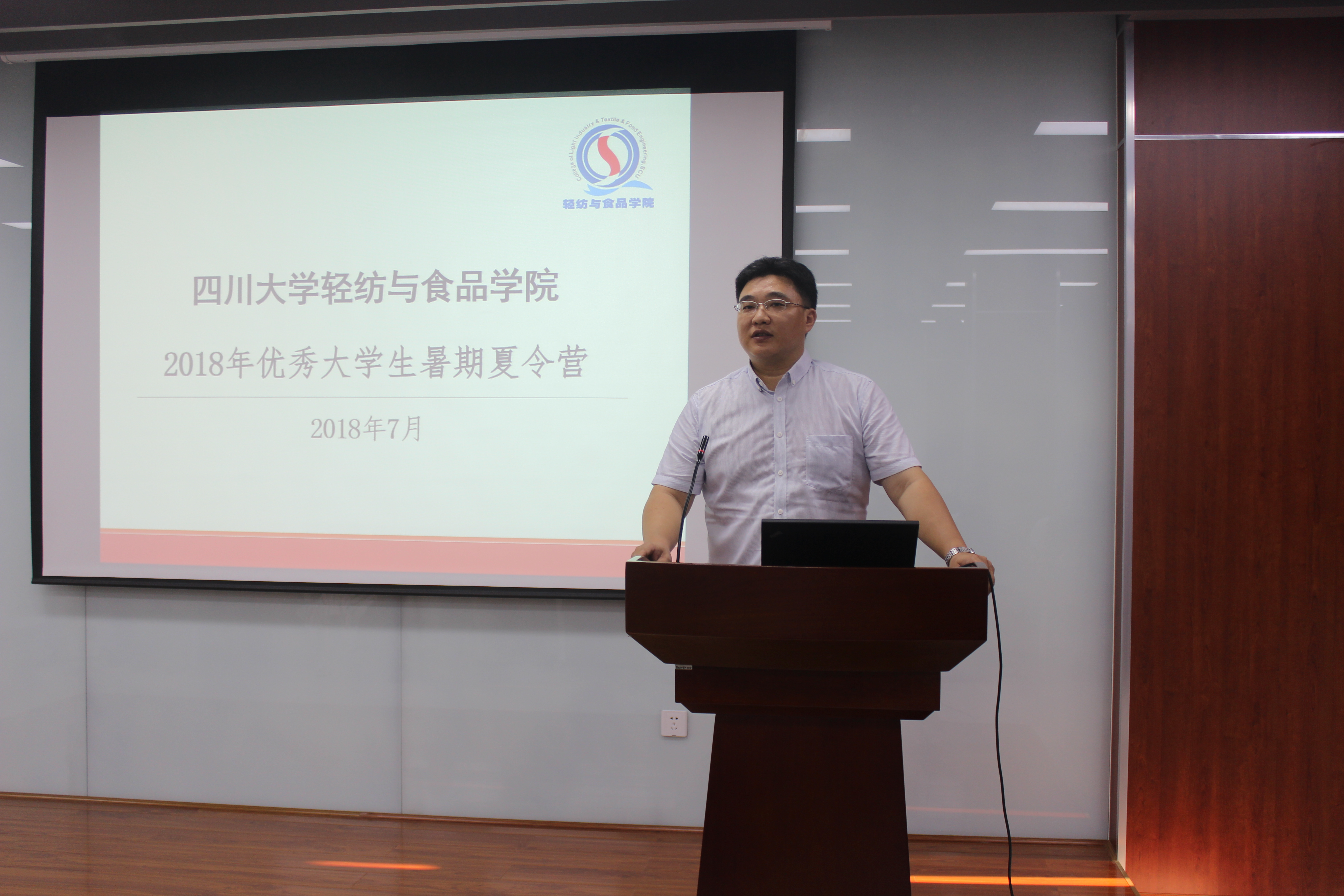 开营仪式于2018年7月23日上午8:30在皮革楼报告厅举行,参加本次开营仪式的有轻纺与食品学院党委书记刘晓虎副教授、副院长何强教授、国家级教学名师陈武勇教授、纺织与服装工程系系主任郭荣辉副教授、生物质与皮革工程系副系主任杨璐铭副教授、食品工程系副系主任迟原龙副教授以及学院党政办主任李慧老师、辅导员贺婷老师。首先,刘晓虎书记代表学院党政对来自全国各高校的44位营员表示热烈欢迎,并对为本次夏令营举行付出辛勤努力的各位老师表示感谢;同时,刘书记介绍了我校作为双一流建设A类高校,bw必威西汉姆联官网也积极牵头先进轻工技术与环境保护一流学科平台建设,在此平台上,我们更需要优秀的研究生生源为双一流建设贡献力量。最后,刘书记对所有营员提出三点希望:一是要珍惜本次交流学习机会,加强对我校学科的了解,并与兄弟学校同学们加强交流,取长补短;二是为共同举办好本次夏令营,请所有营员一定遵守学校的管理规定,安全有序举办好每一项活动;三是预祝同学们在此渡过愉快的时光,同时也预祝夏令营活动圆满成功。接下来,何强副院长从学校、学院的历史沿革,学院学科建设、师资队伍、科研平台以及国际交流等方面作了详细的介绍,让同学们对学校、学院的整体情况有了较为全面的了解。