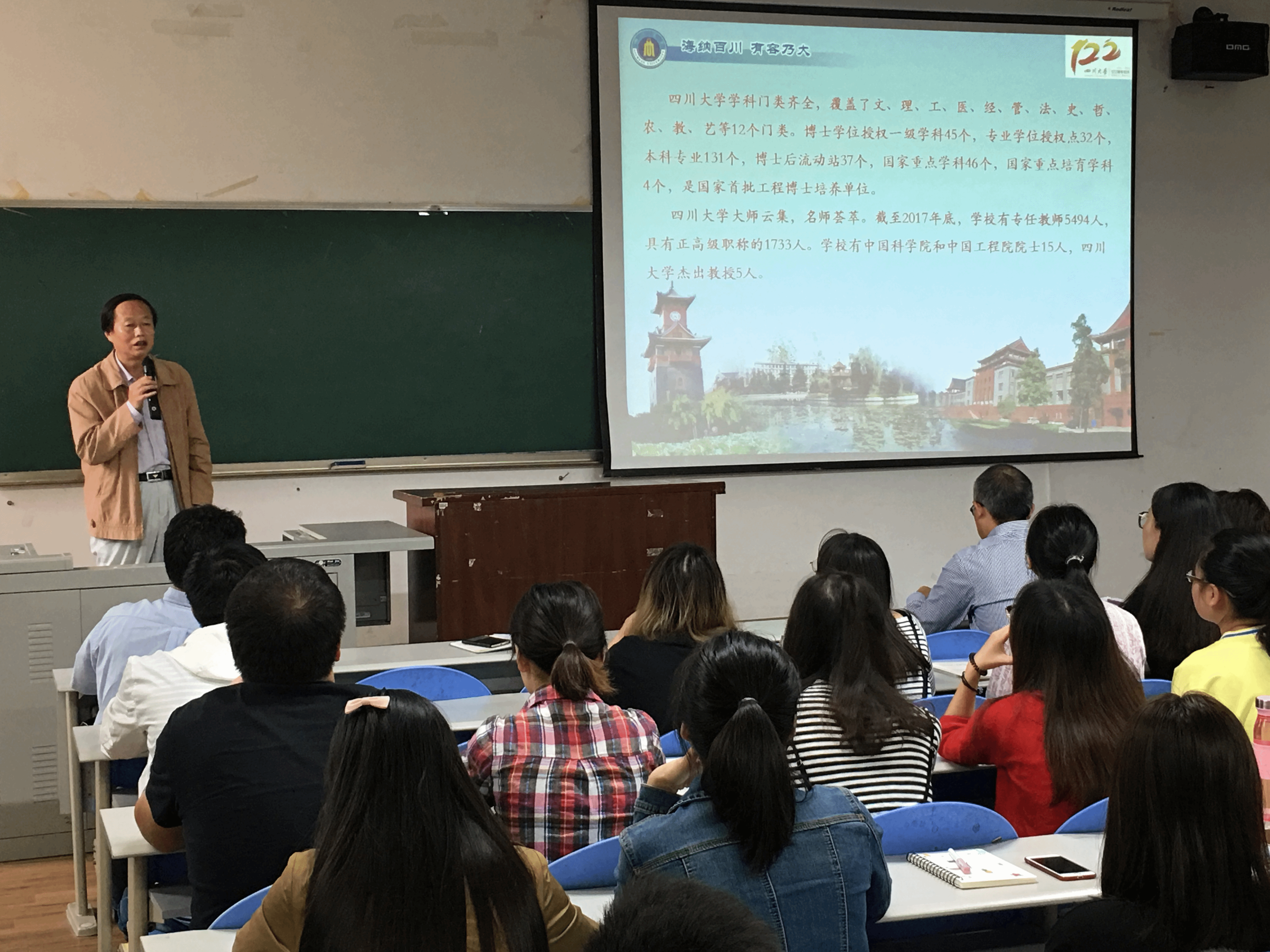 随后,何有节院长从四川大学的发展历史,轻纺与食品学院的学科设置、师资队伍、人才培养、科学研究、对外交流及学生活动等方面进行了全面的介绍,让2018级研究生新生对学院有了更全面、深刻的认识,并为在这样的团队中学习感到自豪与骄傲。