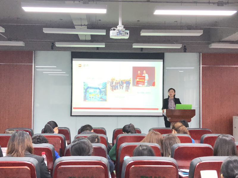 研发部主管曾建英女士以自己在圣恩的多年工作经历为同学讲解了研发工作内容和发展前景,希望同学们踏出校园后能选择好自己的第一份工作,为未来的发展打好坚实的基础。