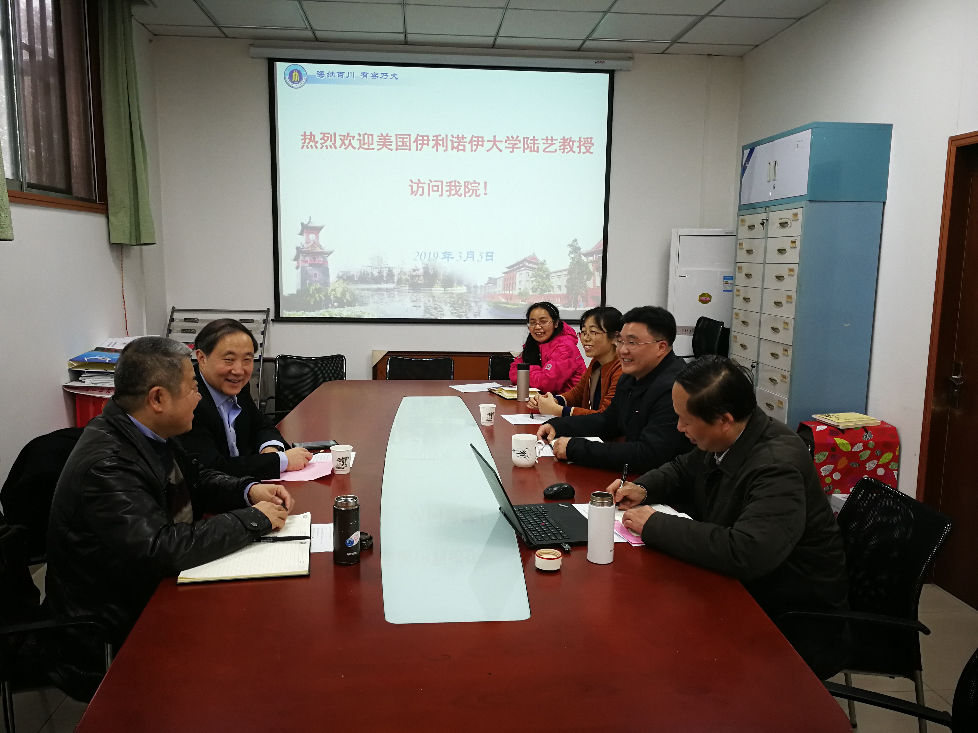 2019年3月5日下午,美国伊利诺伊大学陆艺教授来bw必威西汉姆联官网访问交流,刘晓虎书记、何有节院长、但卫华教授、系主任林炜教授、吕远平教授和郭荣辉副教授在纺工附楼201会议室参加了此次交流会谈。